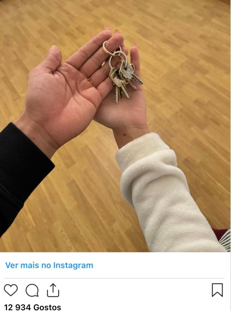 A novidade foi dada esta quarta-feira, 5 de novembro, através de uma publicação conjunta. Na fotografia, o casal surge sorridente, de mãos dadas e com uma chave na mão — símbolo do novo capítulo que agora iniciam. A legenda, simples mas carregada de emoção, dizia apenas: “O início.” Bastou isso para que os fãs enchessem os comentários de corações e mensagens de apoio.